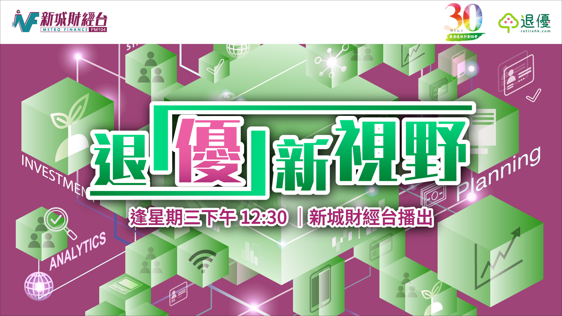 香港人口已經進入高齡化、長壽化,退休策劃如何應對?想退休生活更輕鬆,財務規劃有咩重點?人生規劃又有咩必修科?點樣Plan定未來可持續收入,令退休都keep住有錢收?公募同私募股權投資市場,喺退休策劃上有何作用?由香港退休計劃協會三十周年特約,全新一輯《退「優」新視野》將逐一探討五大專題,帶你開拓退休規劃的新視野!