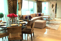 客廳光源充足,全賴躍式設計。設計師亦以自然為主題,樓底利用實木橫樑作為裝飾,為單位亮點之一,筆觸乾淨俐落… |